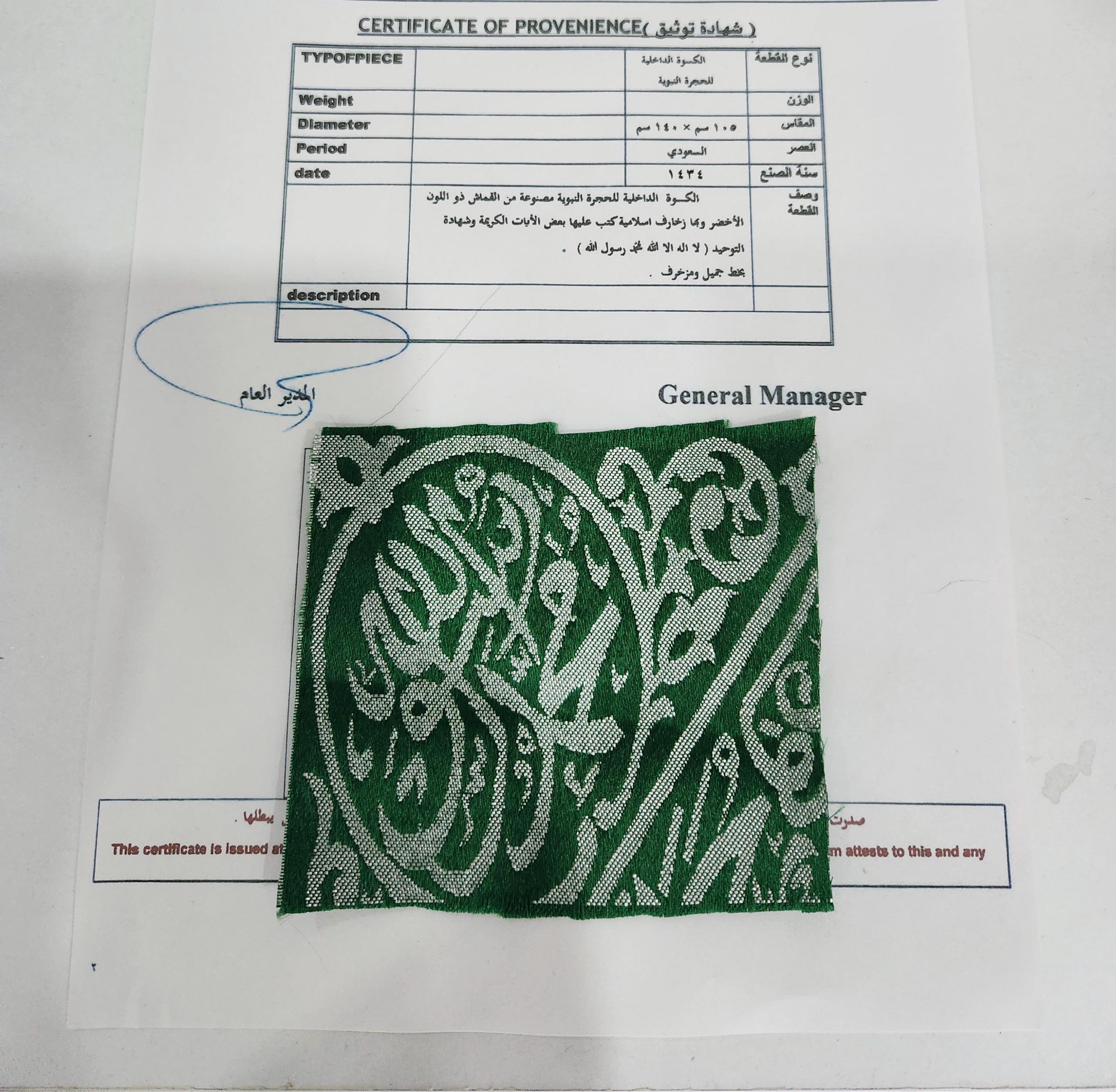Certified Original Prophet Muhammad Grave Cloth - Grave Kiswah